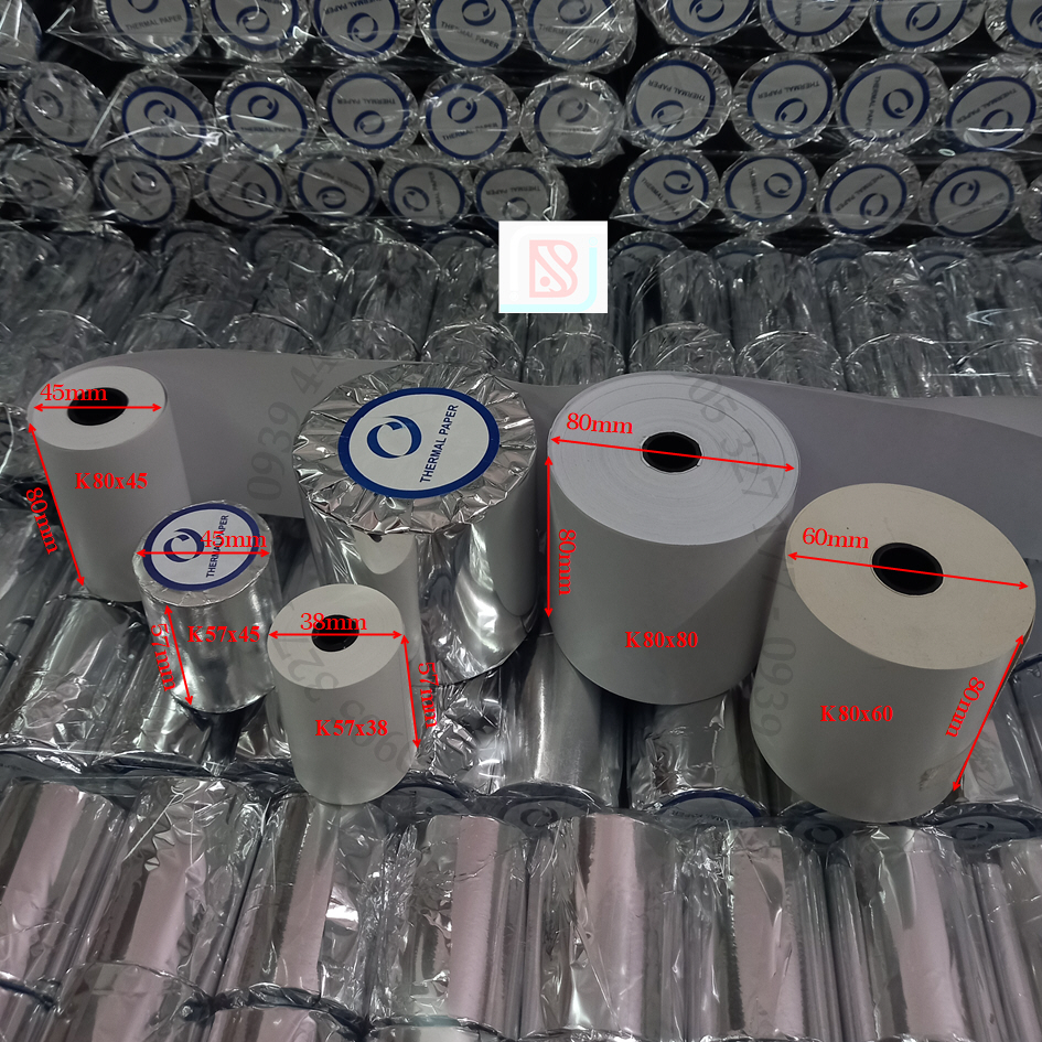 + Với nhiều cách gọi khác nhau nhưng nó vẫn là 1 khổ giấy có chiều ngang là 80mm và đường kính cuộn là 45mm (dài khoảng 15m). Được bọc bên ngoài bằng một lớp giấy bạc, đóng gói 10 cuộn/bịch và 100 cuộn/ thùng.