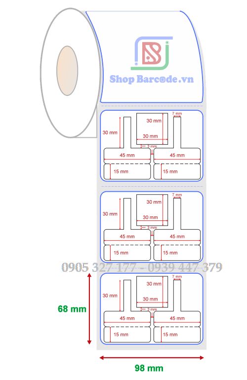 1. Giới thiệu về tem dán kính mắt khổ (98x68)mm x 50m (thân 45x15mm x 2 và đuôi 30mm + dày 8mm)