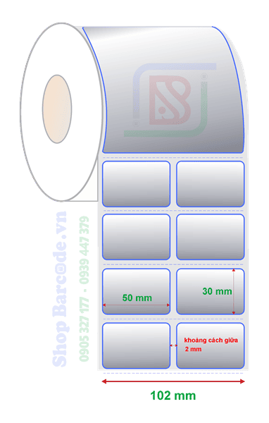 - Decal Xi Bạc 2 tem 50x30mm x 50m