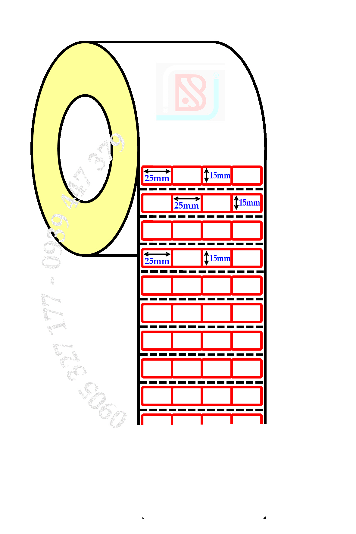 - Cuộn tem 25x15 được bế thành 4 tem/hàng,với kích thước nhãn 25mm x 15mm, cuộn dài 50m (11.100 tem/cuộn), dùng để in tem nhãn mã vạch để dán lên sản phẩm, vật dụng, hàng hóa có kích thước nhỏ.