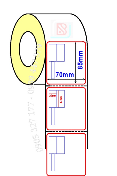 1. Giới thiệu về tem dán kính mắt khổ 70x85mm x 50m (thân 47x22mm và đuôi 30mm + dày 8mm)